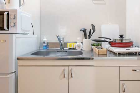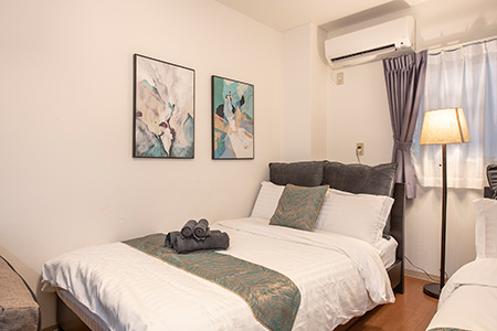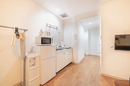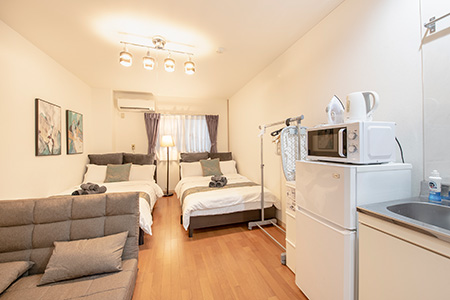 ぱんだホステルでは、全室アパートメントタイプのコンドミニアムとなっており、各部屋にWi-fi やキッチンや洗濯機などを常備した中長期滞在でも快適に過ごせる客室となっています。