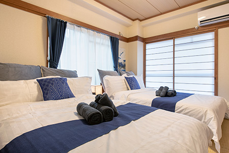 ぱんだホステルでは、全室アパートメントタイプのコンドミニアムとなっており、各部屋にWi-fi やキッチンや洗濯機などを常備した中長期滞在でも快適に過ごせる客室となっています。